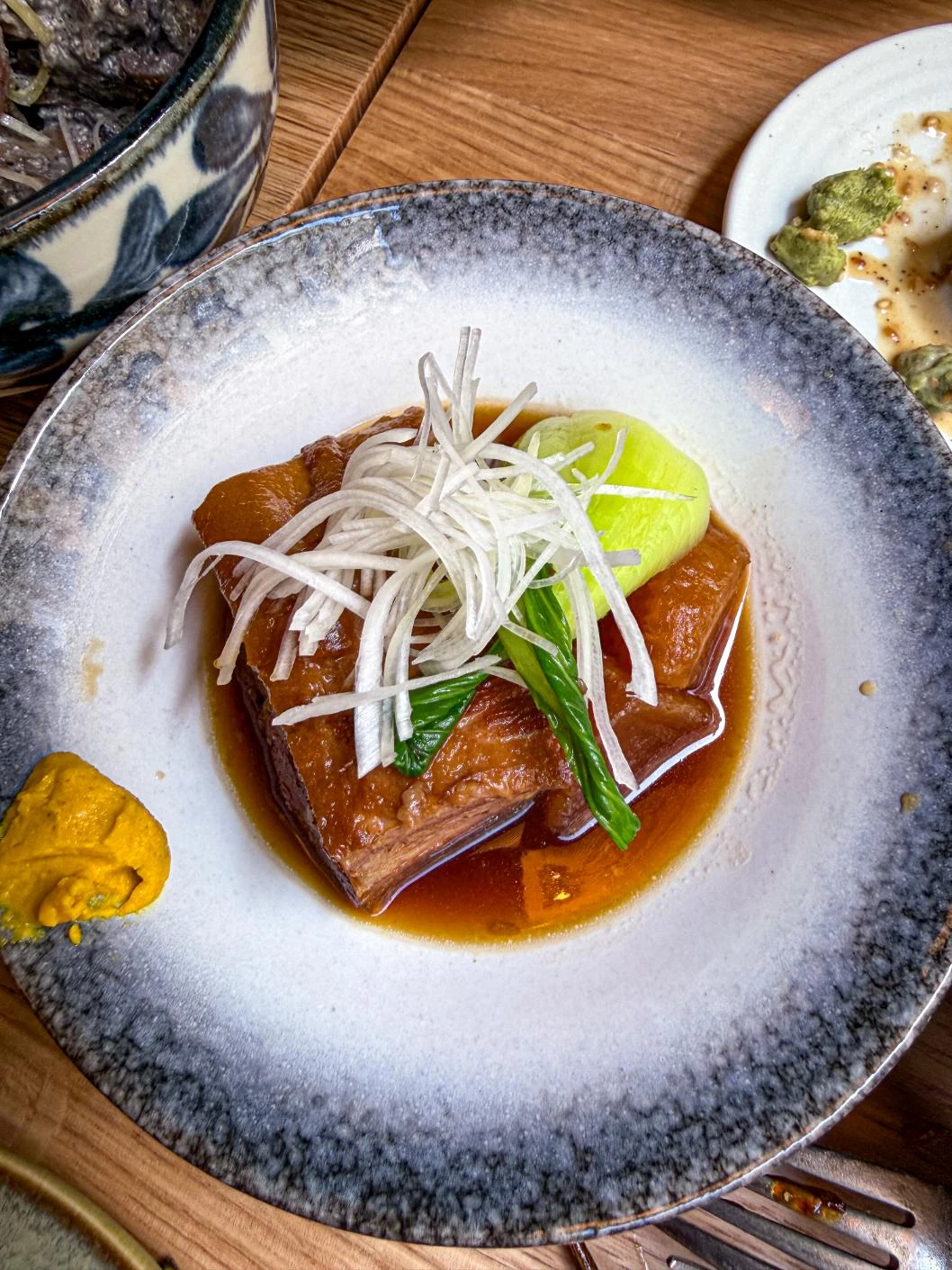 Retrouvez également à la carte nos plats froids et chauds à partager : sashimis du jour , poitrine de porc fondante au saké (Kakuni) , et aubergine glacée au miso.